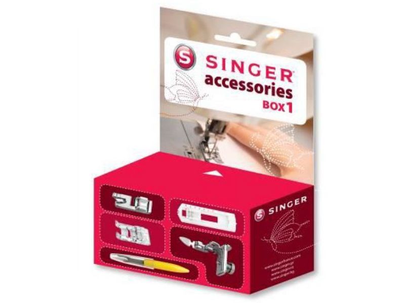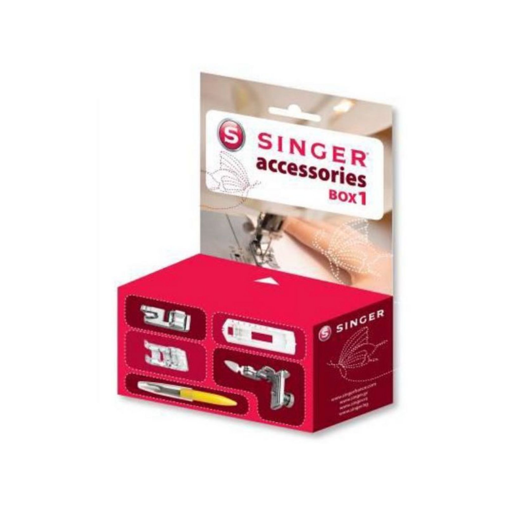 accessoires electromenager Box1 Lot de Pieds de Biche : Pied Ourleur Pour Zig-Zag Pied Presseur et Pied pour Fermetures Eclair