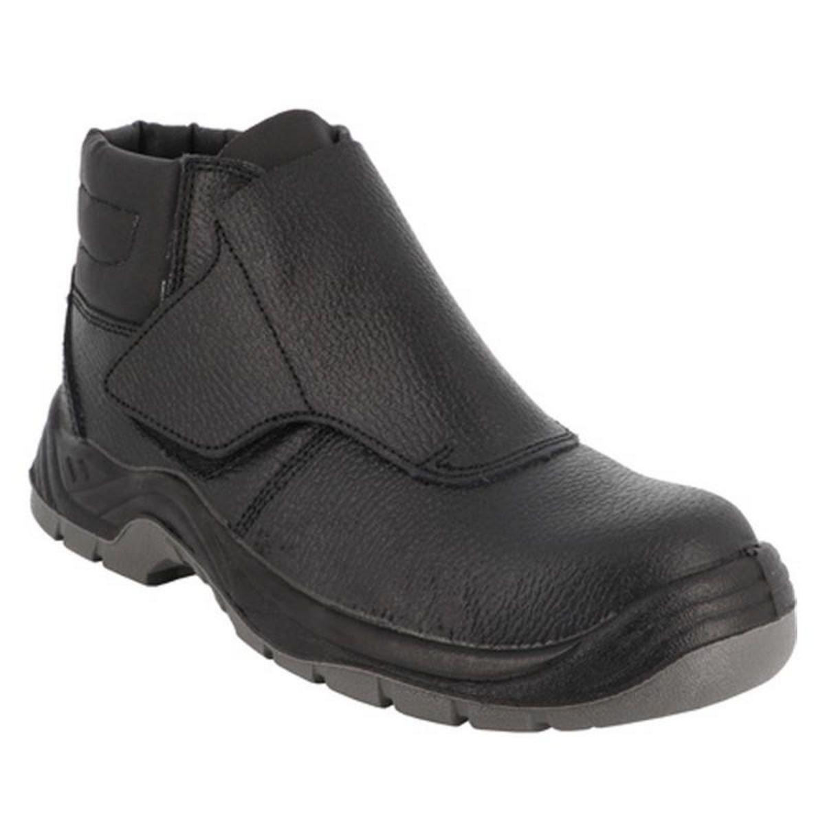 Ces chaussures de sécurités hautes sont en cuir grainé noir avec une doublure en textile. Elles disposent un large rabat en cuir par-dessus la languette avec fermeture autogrippant. Aussi, la chaussure bénéficie d'une semelle intercalaire anti-perforation et un embout antichoc en acier. Ainsi, sa semelle d'usure est injectée en polyuréthane bidensité avec une absorption d'énergie du talon. À la faveur de ses caractéristiques techniques, ce produit est idéal pour les travaux en milieu industriel de manière plus générale.