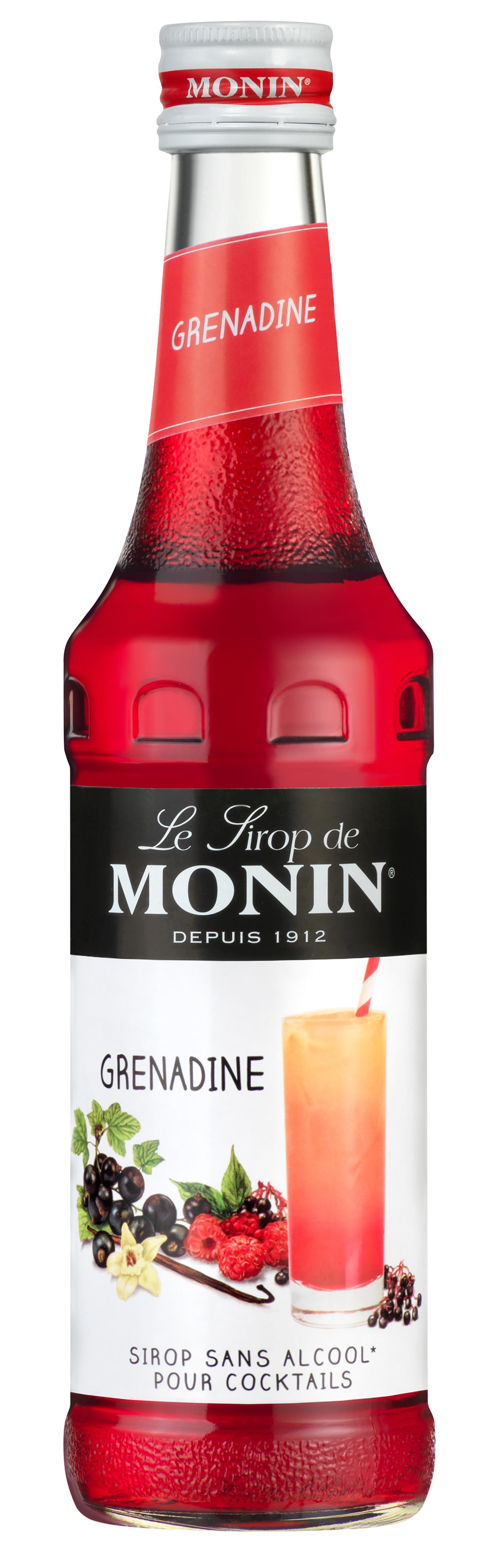 Grenadine Le Sirop de MONIN 33 cl Parfum reconnu des français, le Sirop de Grenadine MONIN permet de créer facilement des cocktails désaltérants à base de jus de fruits ainsi que des boissons gourmandes pour les petits et les grands!