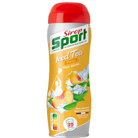 sucre, eau, jus de pêche à base de concentré : 10%, extrait de thé noir (12g/L), acidifiant : acide citrique, arômes.