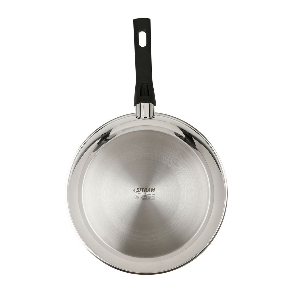 Poêle inox brillant 28cm tous feux dont induction poignée fixe TRES CHIC