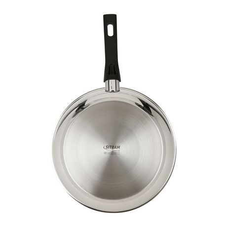 La poêle inox brillant 28 cm TRES CHIC de SITRAM, compatible tous feux dont induction, assure une cuisson uniforme sans revêtement antiadhésif. Sa poignée fixe en plastique thermorésistant offre confort et sécurité, tout en apportant élégance et durabilité à votre cuisine.