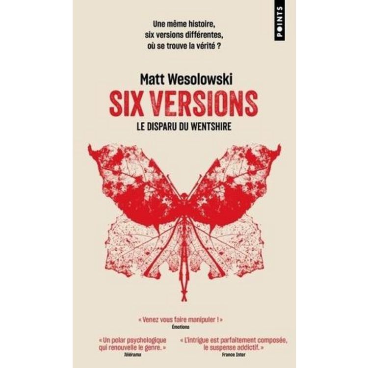 Une enfant disparaît. Six témoins, six versions. Qui dit vrai ? Noël 1988. En pleine forêt du Wentshire, Sorrel Marsden arrête sa voiture pour découvrir l'origine d'un bruit inquiétant. Lorsqu'il rejoint l'habitacle, Alfie, son fils de sept ans, a disparu. L'enfant ne sera jamais retrouvé. En 2018, le journaliste Scott King va tenter d'élucider le mystère qui entoure ce drame dans son célèbre podcast Six Versions. Son enquête le mène au coeur de la forêt du Wentshire, lieu propice à d'étranges visions et hanté de créatures légendaires. Comment Alfie a-t-il pu disparaître ? Six Versions se dévore. Impossible à lâcher ! France Inter Matt Wesolowski est un auteur britannique de Newcastle. Après Les Orphelins du Mont Scarclaw et La Tuerie Macleod , la série Six Versions, dont Le Disparu du Wentshire est la troisième enquête, a connu un grand succès. Toutes sont publiées chez Points. Traduction de l'anglais (Royaume-Uni) par Antoine Chainas
