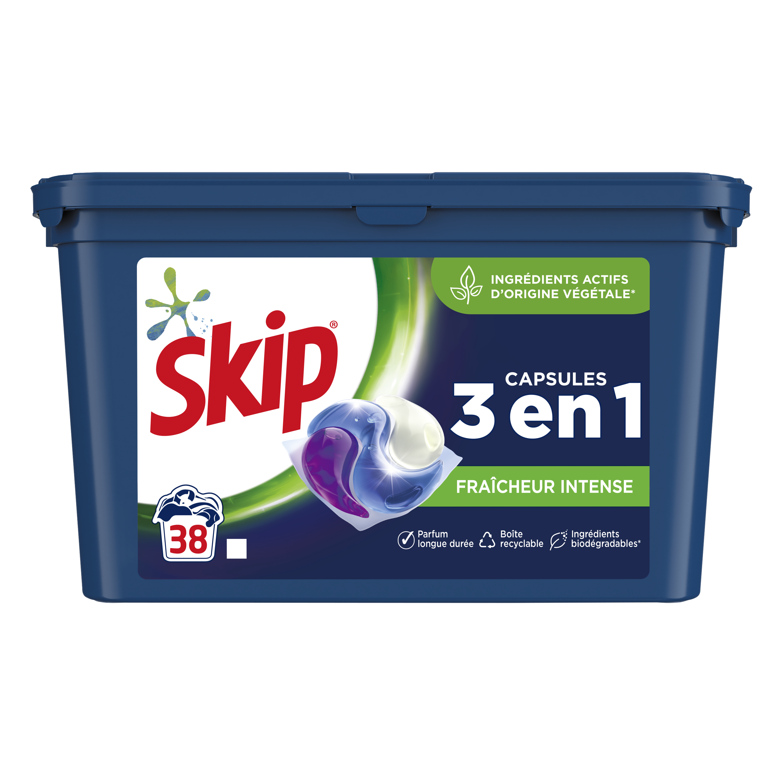 Découvrez les premières lessives avec dosettes à 3 compartiments Skip Ultimate, pour 3 pouvoirs : - Efficacité contre les taches même les plus tenaces - Soin des fibres - Fraîcheur longue durée pour le meilleur des résultats !* Les nouvelles capsules lessive Skip Ultimate Fraîcheur Intense vous garantissent une propreté impeccable et un linge éclatant, grâce à leur technologie triple compartiment et leur cocktail d’enzymes qui permet d’enlever les taches les plus tenaces comme la sauce tomate, le chocolat, le thé, l’huile, les fruits rouges ou encore l’herbe. 1 dosette suffit pour nettoyer le linge en profondeur, vous assurer un résultat parfait et une dissolution optimale même en cycle court. La lessive en capsules Skip Ultimate Fraîcheur Intense vous garantit le meilleur des résultats* en toute simplicité ! Existe aussi en variante Active Clean, Hygiène, Sensitive et Couleurs & Fibres. Pour le meilleur des résultats : 1) Placez une capsule au fond du tambour vide 2) Déposez votre linge 3) Un résultat parfait ! Sécurité renforcée à l’ouverture. Toujours tenir hors de portée des enfants. Plus d’informations sur www.keepcapsfromkids.eu. Skip, ce sont plus de 50 ans d’expertise et d’innovations dans le domaine des lessives, toujours guidées par une forte volonté d’améliorer le quotidien des familles. Skip, c’est également une philosophie de marque unique ! Chez Skip, nous sommes convaincus que nos enfants ont besoin d’expérimenter, de jouer dehors et de découvrir le monde qui les entoure en toute sérénité, afin de se préparer à demain ! Ainsi, chaque tache peut être synonyme d’un moment de joie et de partage, d’un challenge réussi ou d’une nouvelle aventure. C’est pourquoi nos lessives sont efficaces sur les taches même les plus tenaces : pour laisser aux enfants la liberté de se salir ! C’est d’ailleurs pour cela que Skip soutient depuis 2016 la Journée École en Plein Air, une initiative internationale destinée à encourager les enfants à apprendre et à jouer en plein air ! « Libre de se salir », c’est la garantie d’une marque experte en la matière, grâce à laquelle vous n’aurez plus à vous soucier des taches ! Plus d’informations sur www.skip.fr et www.journeeecoleenpleinair.fr. *Au sein de la gamme Skip Capsules Lessive Capsules