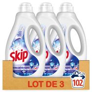 La nouvelle lessive liquide Skip Extra Détachant 34 Lavages élimine les odeurs tenaces, purifie et protège vos vêtements et votre linge de maison. Elle est imbattable sur 50 taches et nettoie en profondeur. Toute l'efficacité de Skip dans une formule plus respectueuse de l'environnement, grâce à ses ingrédients actifs d'origine végétale. Cette lessive garantit un résultat impeccable pour un linge propre, éclatant et frais pour longtemps. Efficace même en cycle court et dès 30 °C, elle est respectueuse de l'environnement. Avec la lessive liquide Skip, économisez de l'énergie à chaque lavage et réduisez les émissions de CO₂. Cette lessive convient aux machines à laver à dosage automatique (auto-dose). De plus, sa bouteille et son bouchon sont entièrement recyclables. Dans la même gamme, retrouvez les lessives aux bénéfices renforcés Skip Touche de Cajoline et Skip Odeur Control. Versez une dose dans le bac à produit de votre machine. 45 ml : dosage recommandé pour une eau peu ou moyennement dure. Ajoutez 15 ml de lessive pour une eau dure ou du linge très sale. Lavage à la main : diluer 35 ml dans 10 L d'eau. Prétraitement des taches : 1. Déposez une petite quantité de la lessive liquide Skip sur les taches 2. Frottez doucement 3. Lancez le cycle de lavage immédiatement. Skip, ce sont plus de 60 ans d'expertise et d'innovations dans le domaine des lessives, toujours guidées par une volonté d'améliorer le quotidien des familles. Skip, c'est aussi une philosophie de marque unique ! Chez Skip, nous sommes convaincus que nos enfants ont besoin d'expérimenter, de jouer dehors et de découvrir le monde qui les entoure en toute sérénité, afin de se préparer à demain. Ainsi, chaque tache peut être synonyme d'un moment de joie et de partage, d'un challenge réussi ou d'une nouvelle aventure. Pour nous, la saleté des vêtements est la marque de l'action. C'est pourquoi nos lessives sont efficaces sur les taches, même les plus tenaces. Avec Skip, la saleté, c'est bien et ça le sera toujours. Skip s'engage à prendre soin de votre linge à l'épreuve de la vie et du quotidien !