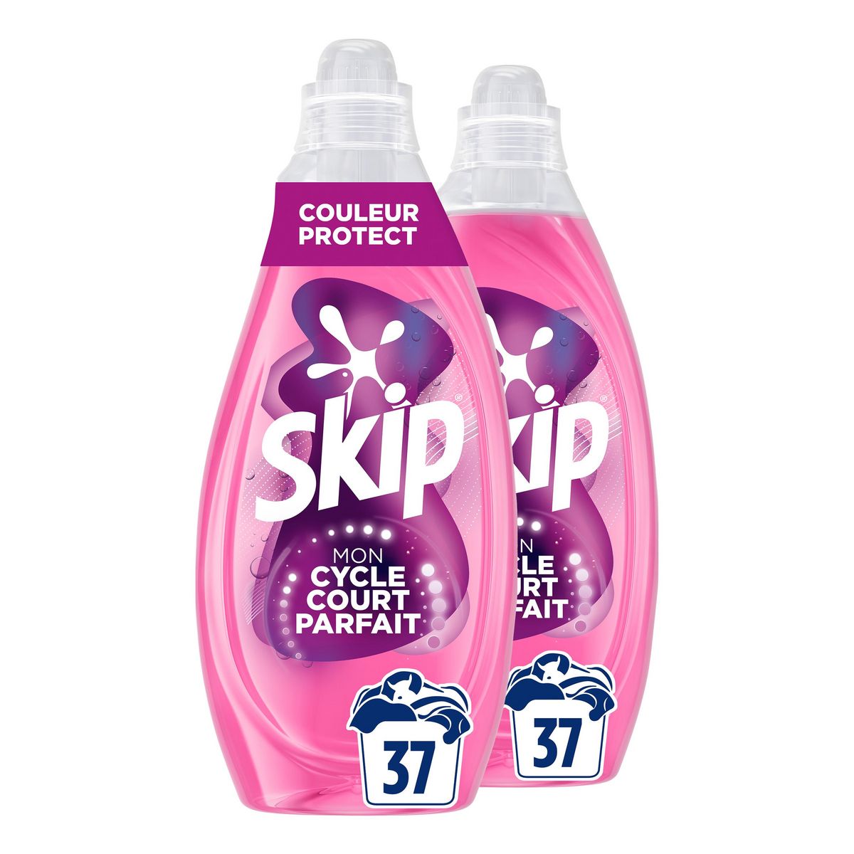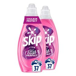 La lessive liquide SKIP Cycle Court Couleur Protect 2x37 Lavages est la première lessive spécialement conçue pour les cycles courts. Efficacité optimale, même dès 15 minutes.
