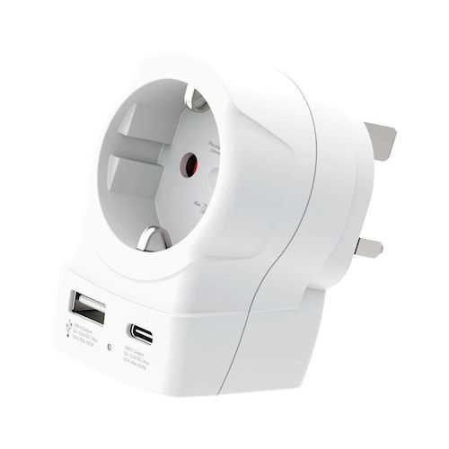 Adaptateur de voyage Europe vers Royaume-Uni USB-A + USB-C