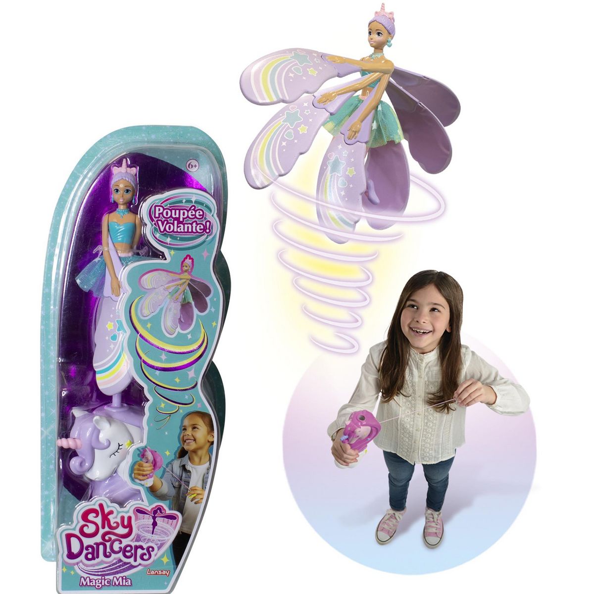 Prete a faire voler tes Sky Dancers ? Découvre Magic Mia, ta magnifique poupée et sa licorne ! Pose Magic Mia sur le lanceur licorne et tire sur la corde pour la regarder tourbillonner ! Wow, c'est magique ! Elle n'attend que toi pour s'envoler ! Fonctionne sans piles.