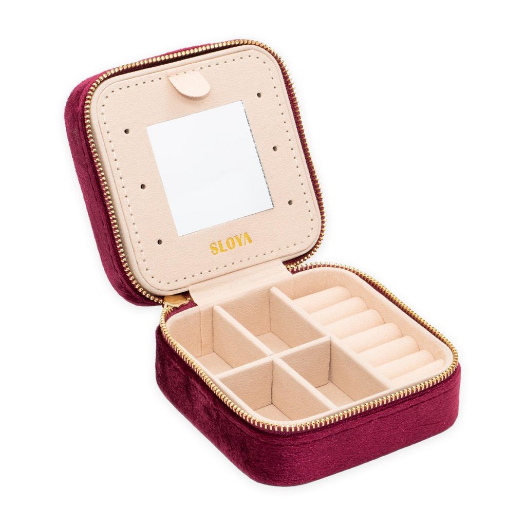 Plus d'excuses, ranger vos bijoux devient désormais un réel plaisir. Sloya vous propose une boîte à bijoux chic, compact et pratique. En velours ultra doux de couleur rouge grenat, elle prendra soin de vos petites merveilles.