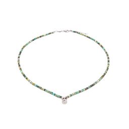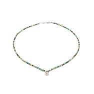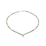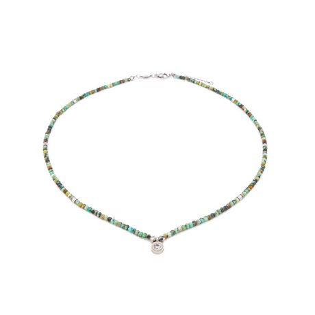 Ce collier Lumia est composé de pierres de Turquoise Africain et s'ajuste en trois positions de 42 à 46 cm. Un modèle unique, de par ses pierres et son assemblage réalisé à la main. Le fermoir et les inserts en acier inoxydable argentés créent un mariage harmonieux avec la pierre de Turquoise. Les pierres de 2 mm d'épaisseur sont facettées pour offrir de multiples reflets rendant ce collier rayonnant. Un pendentif de 5 mm incrusté d'un strass vient donner un éclat supplémentaire. Ce pendentif signe l'élégance de ce bijou empierré en lui apportant la brillance qui illuminera votre visage. La pierre de Turquoise africain possède des vertus très appréciées, elle est reconnue pour apporter la confiance à celle ou celui qui la porte. Vous cherchez une idée cadeau originale et unique ? Chaque pierre de nos bijoux est originale et authentique. Tous les bijoux SLOYA sont livrés dans un écrin à l'effigie de la marque.