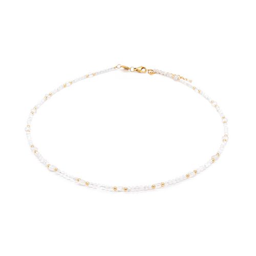 Avec ses 170 pierres de Lune de deux formes différentes, le collier Paloma se place comme un véritable accessoire d'exception. Les pierres sont facettées pour créer de splendides reflets qui illumineront votre visage. Des inserts ronds de couleur dorée viennent apporter une touche de brillance et d'élégance à ce somptueux bijou. Pour un ajustement parfait, le collier est réglable de 39,5 cm à 43 cm grâce à une chaînette d'extension. L'assemblage réalisé à la main vous garantit un bijou d'une qualité supérieure et d'une véritable authenticité. Ce collier intemporel s'accordera avec la majorité de vos tenues pour vous accompagner au quotidien. Tous les bijoux SLOYA sont livrés dans un écrin à l'effigie de la marque.