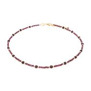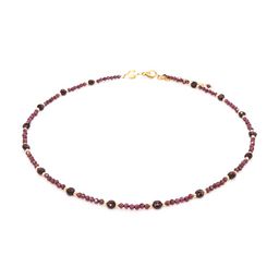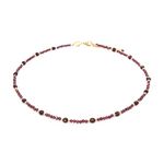 Avec ses 170 pierres de Grenat de deux formes différentes, le collier Paloma se place comme un véritable accessoire d'exception. Les pierres sont facettées pour créer de splendides reflets qui illumineront votre visage. Des inserts ronds de couleur dorée viennent apporter une touche de brillance et d'élégance à ce somptueux bijou. Pour un ajustement parfait, le collier est réglable de 39,5 cm à 43 cm grâce à une chaînette d'extension. L'assemblage réalisé à la main vous garantit un bijou d'une qualité supérieure et d'une véritable authenticité. Ce collier intemporel s'accordera avec la majorité de vos tenues pour vous accompagner au quotidien. Tous les bijoux SLOYA sont livrés dans un écrin à l'effigie de la marque.