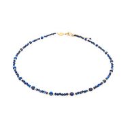 Avec ses 170 pierres de Lapis-lazuli de deux formes différentes, le collier Paloma se place comme un véritable accessoire d'exception. Les pierres sont facettées pour créer de splendides reflets qui illumineront votre visage. Des inserts ronds de couleur dorée viennent apporter une touche de brillance et d'élégance à ce somptueux bijou. Pour un ajustement parfait, le collier est réglable de 39,5 cm à 43 cm grâce à une chaînette d'extension. L'assemblage réalisé à la main vous garantit un bijou d'une qualité supérieure et d'une véritable authenticité. Ce collier intemporel s'accordera avec la majorité de vos tenues pour vous accompagner au quotidien. Tous les bijoux SLOYA sont livrés dans un écrin à l'effigie de la marque.