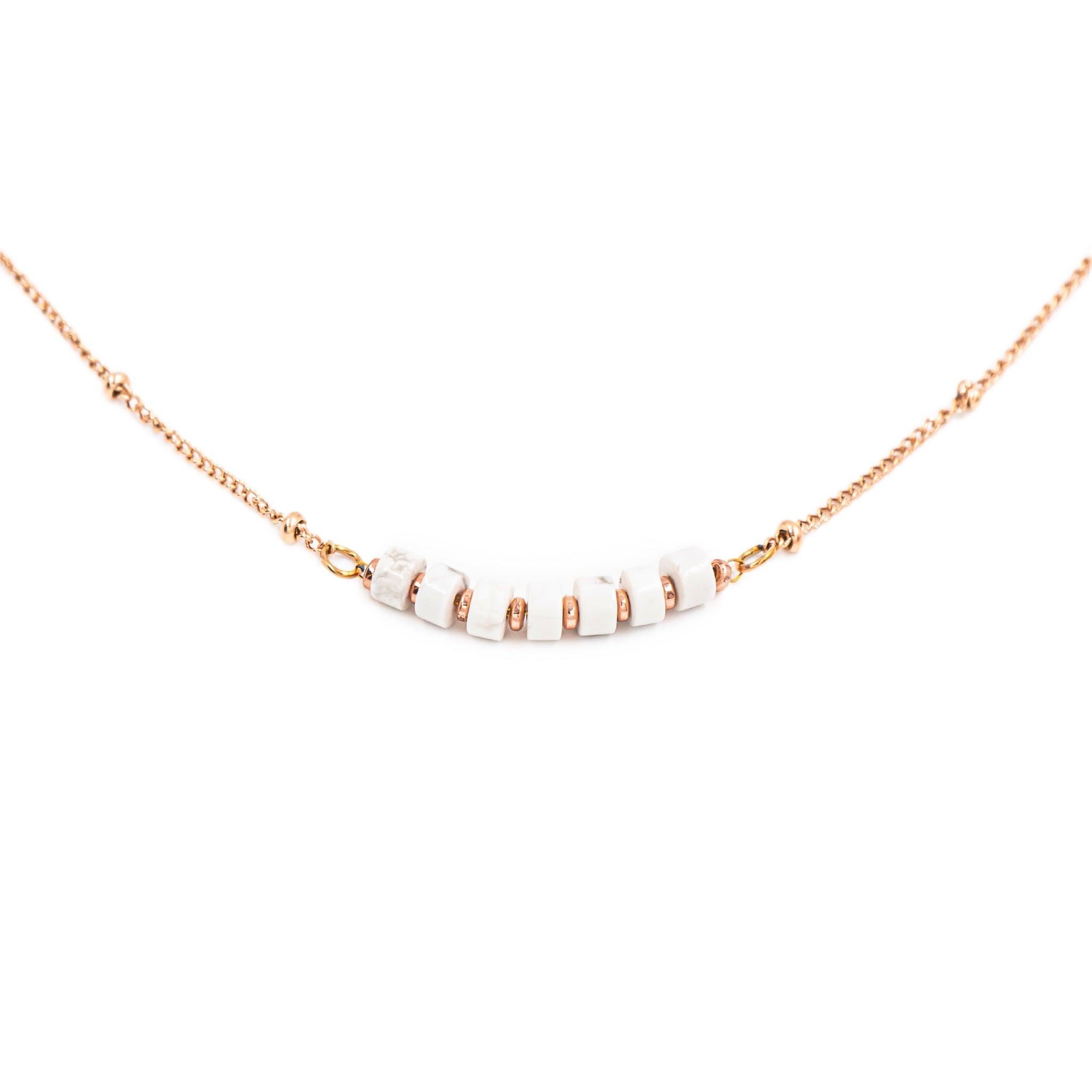 Découvrez le collier Piana, un modèle unique en pierres de Howlite.
