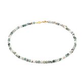 Le collier Serena confectionné d'environ 80 pierres d'Agate arbre figure comme une pièce incontournable. Cette création assemblée à la main est agréable à porter toute la journée et deviendra votre accessoire favori. Doré à l'or fin 18k, ce collier gravé Sloya s'ajuste de 41 à 45 cm grâce à sa chaînette d'extension. Les pierres polies de 4 mm sont maintenues par une chaînette pour vous offrir un bijou résistant. Succombez à cet élégant collier et combinez-le avec un bracelet ou des boucles d'oreilles Sloya en pierres d'Agate arbre.