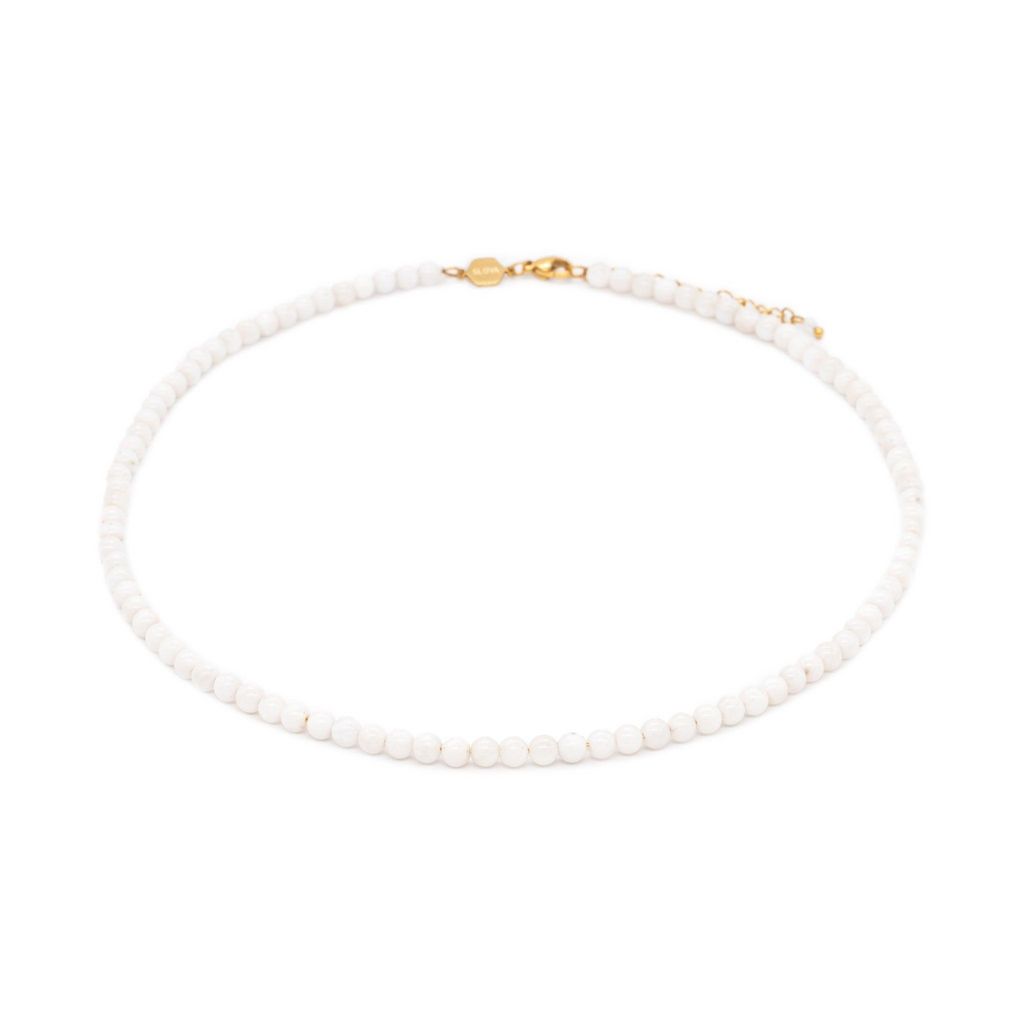 Le collier Serena confectionné d'environ 80 pierres de Lune figure comme une pièce incontournable. Cette création assemblée à la main est agréable à porter toute la journée et deviendra votre accessoire favori. Doré à l'or fin 18k, ce collier gravé Sloya s'ajuste de 41 à 45 cm grâce à sa chaînette d'extension. Les pierres polies de 4 mm sont maintenues par une chaînette pour vous offrir un bijou résistant. Succombez à cet élégant collier et combinez-le avec un bracelet ou des boucles d'oreilles Sloya en pierres de Lune.