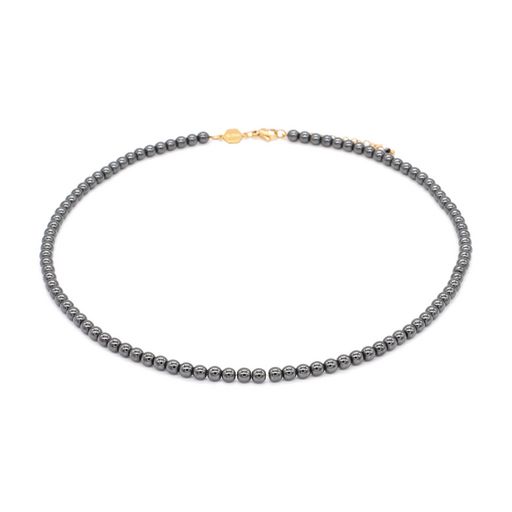 Le collier Serena confectionné d'environ 80 pierres d'Hématite figure comme une pièce incontournable. Cette création assemblée à la main est agréable à porter toute la journée et deviendra votre accessoire favori. Doré à l'or fin 18k, ce collier gravé Sloya s'ajuste de 41 à 45 cm grâce à sa chaînette d'extension. Les pierres polies de 4 mm sont maintenues par une chaînette pour vous offrir un bijou résistant. Succombez à cet élégant collier et combinez-le avec un bracelet ou des boucles d'oreilles Sloya en pierres d'Hématite.
