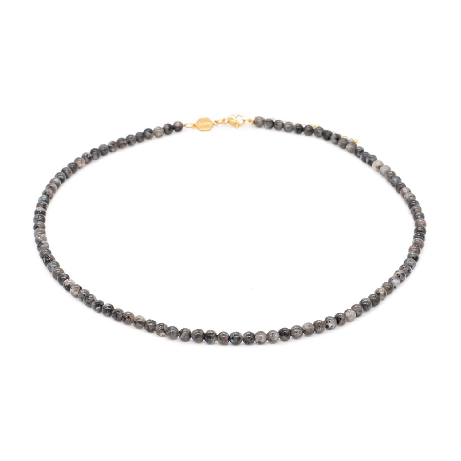 Le collier Serena confectionné d'environ 80 pierres de Spectrolite figure comme une pièce incontournable. Cette création assemblée à la main est agréable à porter toute la journée et deviendra votre accessoire favori. Doré à l'or fin 18k, ce collier gravé Sloya s'ajuste de 41 à 45 cm grâce à sa chaînette d'extension. Les pierres polies de 4 mm sont maintenues par une chaînette pour vous offrir un bijou résistant. Succombez à cet élégant collier et combinez-le avec un bracelet ou des boucles d'oreilles Sloya en pierres de Spectrolite.