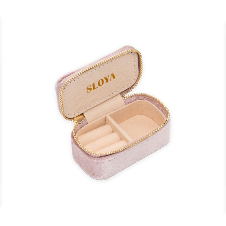 À la fois élégante et pratique, cette mini boîte à bijoux Sloya en velours rose pêche vous permettra d'avoir vos bijoux préférés à portée de main où que vous soyez. Fabriqué à la main, c'est l'accessoire idéal pour les déplacements et parfait pour ranger vos bijoux sans vous encombrer. Entièrement recouverte de velours doux, elle assure une réelle protection de vos précieux bijoux.