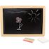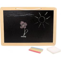 formidable pour écrire des petites notes ou pour dessins créatifs craies colorées et petite éponge pour nettoyer inclus l'ardoise s'accroche facilement grâce à un petit cordon Cette ardoise donne aux enfants la possibilité de dessiner ce dont ils ont envie et de laisser libre cours à leur créativité