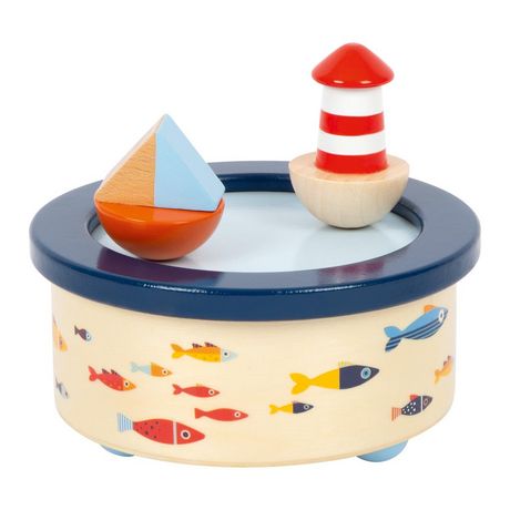 ? Boîte à musique détaillée en en bois qui joue la mélodie de « Do you know how many stars there are? ». ? L'adorable voilier et le phare en bois font la ronde pendant que la mélodie résonne. ? La boîte à musique est facile à faire marcher et peut être utilisé par des enfants, elle forme la motricité fine de façon ludique. ? Grâce aux aimants, les figurines dansantes sont faciles à détacher et replacer. ? La boîte à musique conçue pour enfants est une décoration qui attire les regards dans la chambre d'enfant et qui aide les enfants à s'endormir