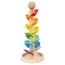 Ce circuit à billes est riche en sensations auditives ! Dès qu´une bille de verre est placée dans la boule en bois rouge, c´est le début d´une succession de sons. Elle tombe sur les ailes en bois colorées en forme d´éventail, dont les tailles différentes produisent des sons distincts. Le ton devient