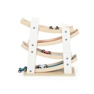 * Superbe piste de course avec support solide. * En bois naturel laqué blanc. * Combiné à la conception altique des couleurs des rampes. * Favorise la motricité et la coordination ?il-main. * Dimensions : piste de course env. 25 x 10 x 27 cm, voiture de course env. 4,5 x 3,5 x 1,5 cm
