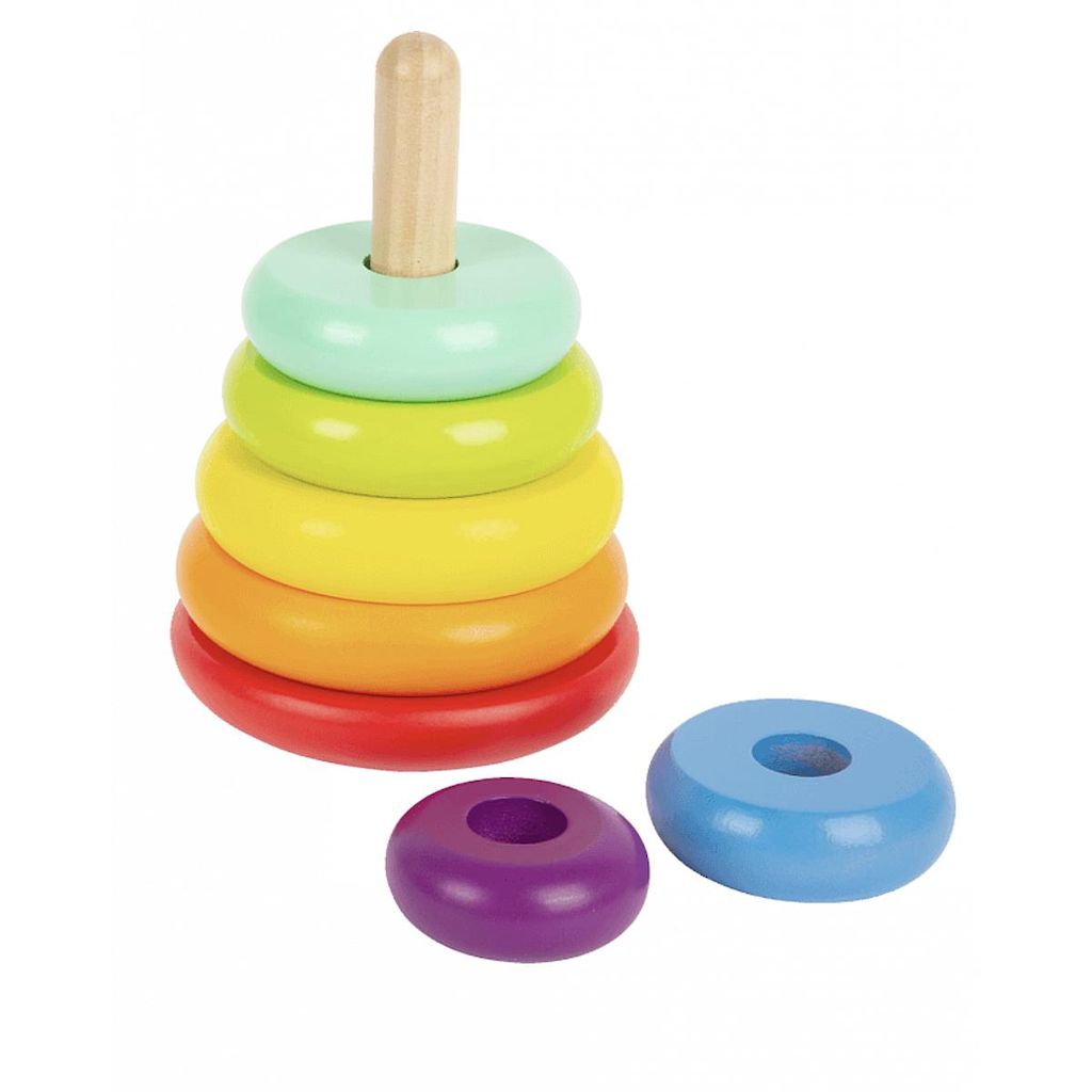 Un arc-en-ciel à empiler et à encastrer ! Cette tour à empiler brille de couleurs vives de l'arc-en-ciel et le bois travaillé à la main anime même les plus jeunes enfants à trier les différents anneaux de couleur par taille et par couleur. Les compétences motrices, la coordination ?il-main et la com