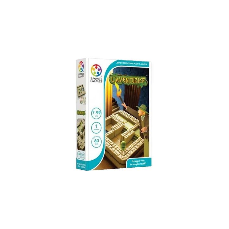 L'Aventurier de SmartGames est un jeu de logique captivant conçu pour les enfants à partir de 7 ans. Ce jeu comprend 48 défis différents et 8 pièces amovibles, offrant 4 niveaux de difficulté pour s'adapter à tous les joueurs. Le but est d'échapper au labyrinthe d'un temple maudit tout en évitant de