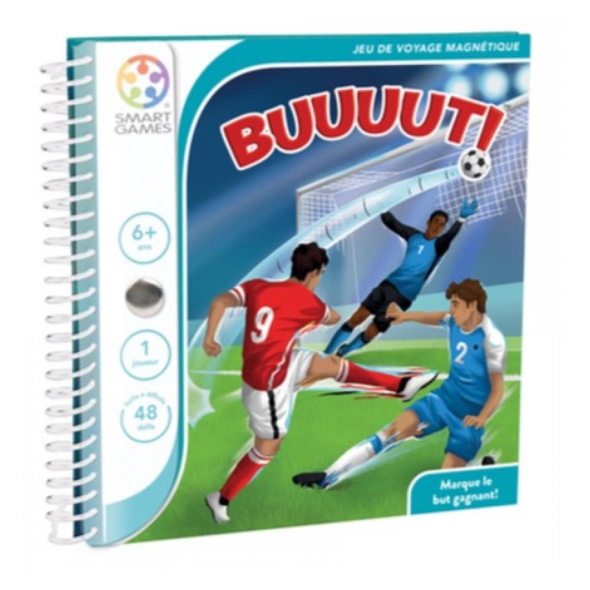 jeu de voyage smart game À partir d'une position initiale sur le terrain, passez la balle entre les joueurs et trompez le gardien adversaire pour marquer le BUUUUT ! 48 défis attendent les amateurs comme les professionnels du ballon rond. A toujours avoir sur soi, en voiture, en avion, en vacances,