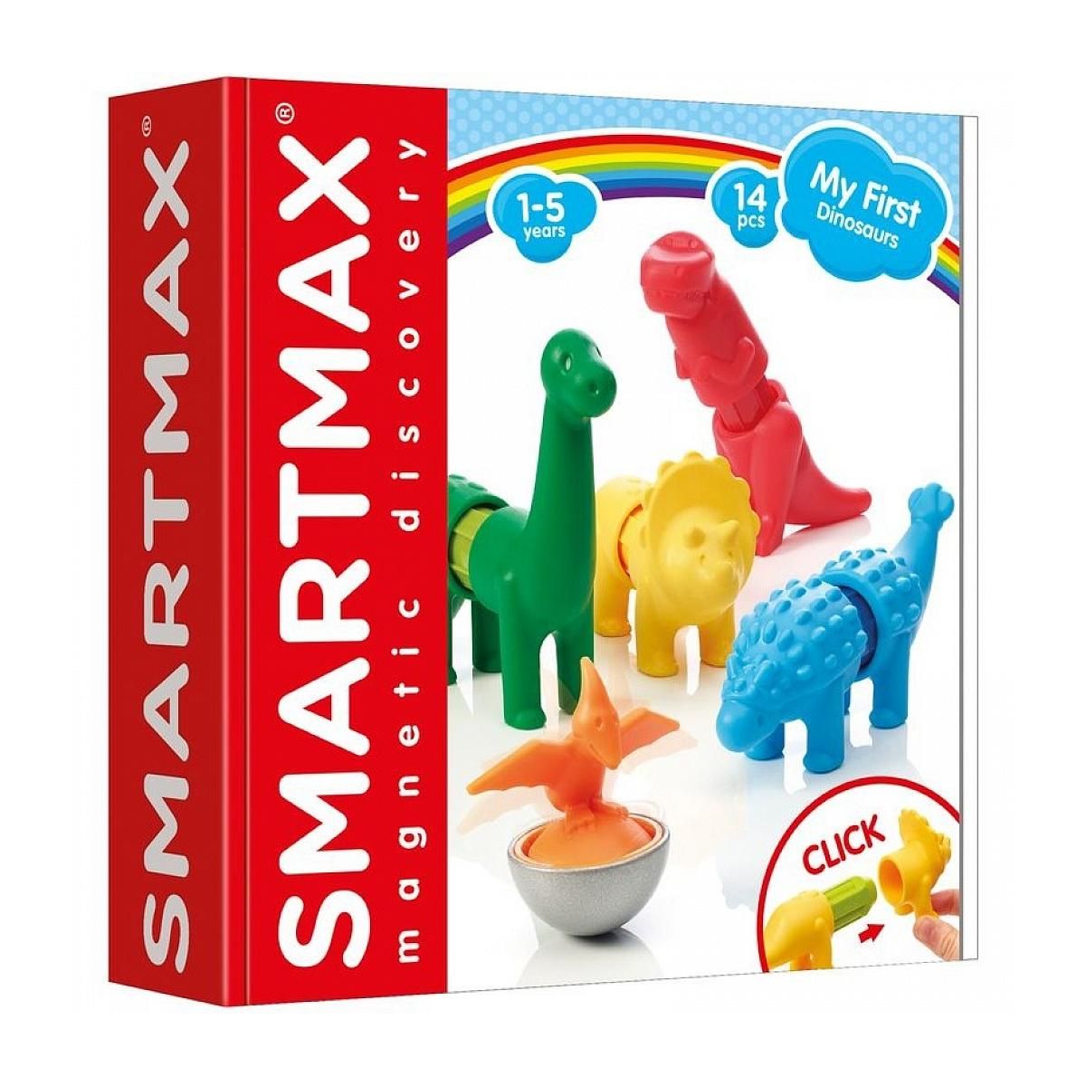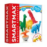 . Présentation du jeu SmartMax - Mes premiers dinosaures. 5 dinosaures à assembler pour compléter vos Smartmax. Les formes des animaux s'aimantent sur n'importe quelle pièce de Smartmax. Les enfants peuvent assembler les animaux en respectant les critères de couleur ou créer des dinosaures fantaisistes. Pour donner une dimension imaginaire au jeu de construction magnétique Smartmax. Contenu: 8 pièces animaux et 4 bâtonnets aimantés (L. 7 cm) pour fabriquer 4 gros dinosaures, 1 dinosaure ailé, 1 demi-sphère aimantée. Cette boîte est compatible avec toutes les références de Smartmax