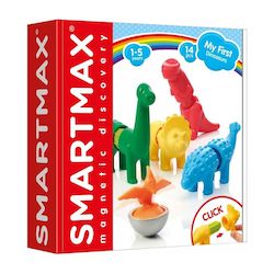 . Présentation du jeu SmartMax - Mes premiers dinosaures. 5 dinosaures à assembler pour compléter vos Smartmax. Les formes des animaux s'aimantent sur n'importe quelle pièce de Smartmax. Les enfants peuvent assembler les animaux en respectant les critères de couleur ou créer des dinosaures fantaisis
