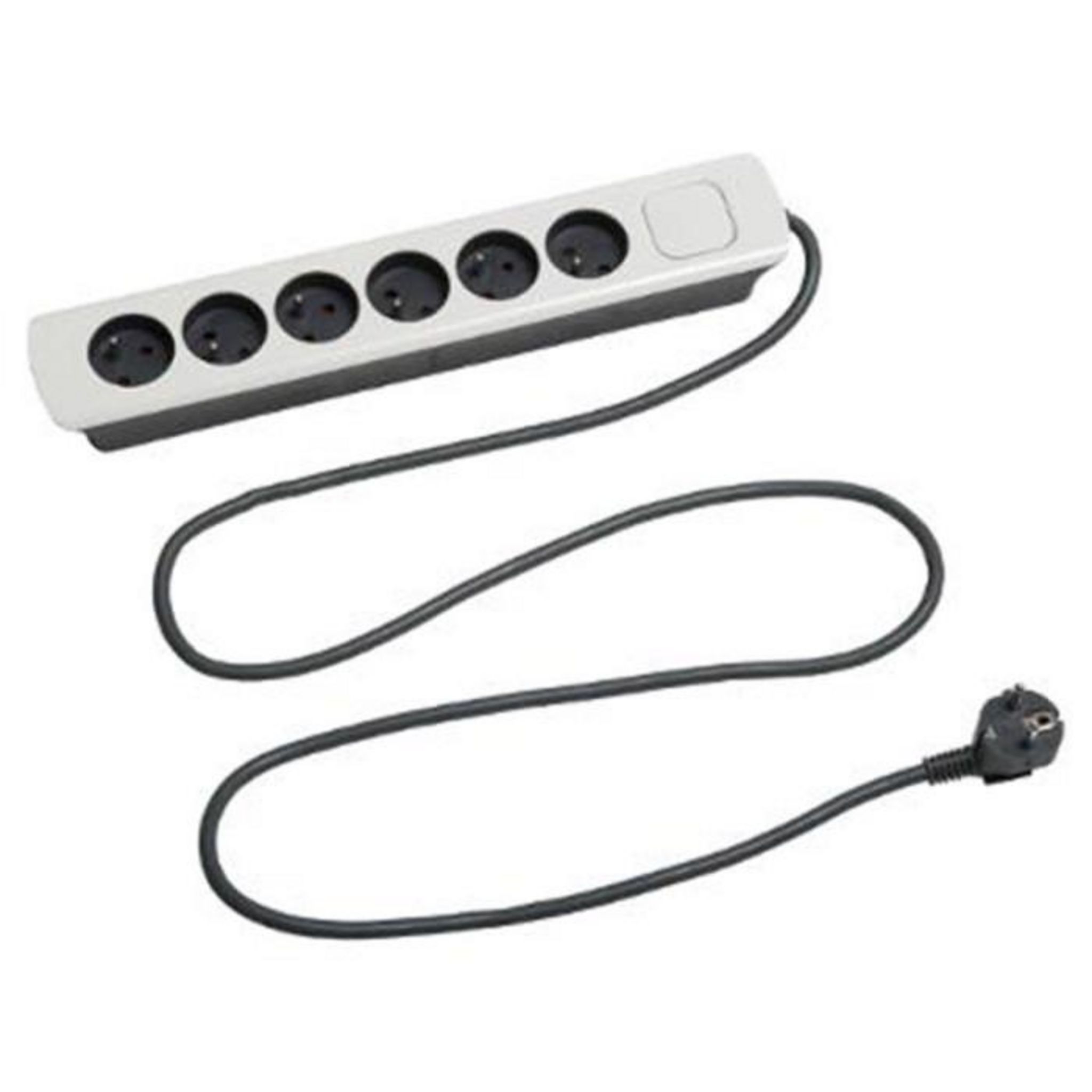 Multiprise 6 Prises Terre 1,5M Blanc & Gris
