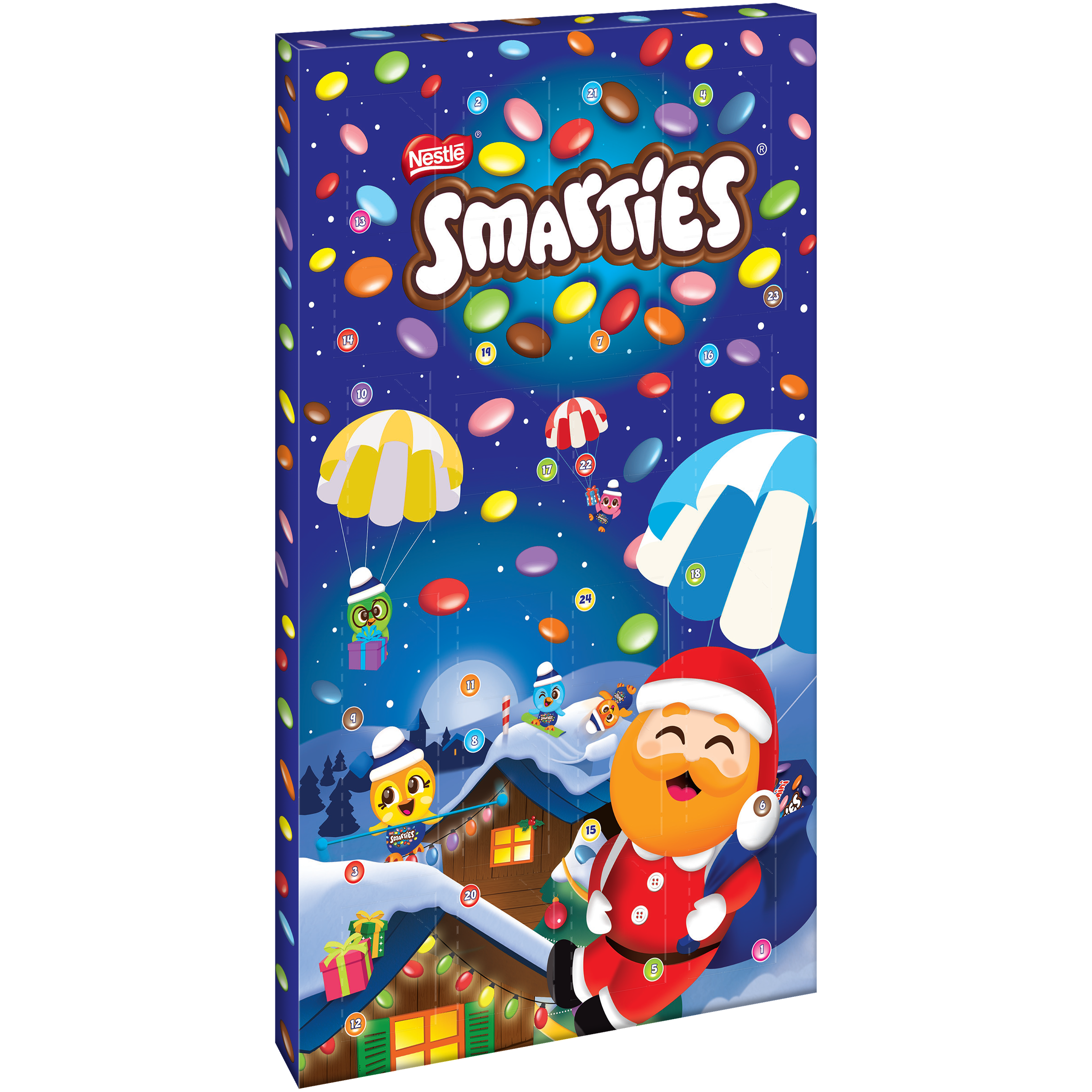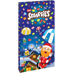 Patientez jusqu'à Noël avec le Calendrier de l'Avent SMARTIES ! 24 délicieuses figurines au bon chocolat au lait pur beurre de cacao avec des mini-SMARTIES à l'intérieur pour toujours plus de fun! SMARTIES : c'est du chocolat pur beurre de cacao et des couleurs d'origine naturelle. Plusieurs décors - Livraison aléatoire. Faites plaisir à vos enfants avec SMARTIES ! Figurines de chocolat au lait (87,5%) avec bonbons de chocolat au lait dragéifiés