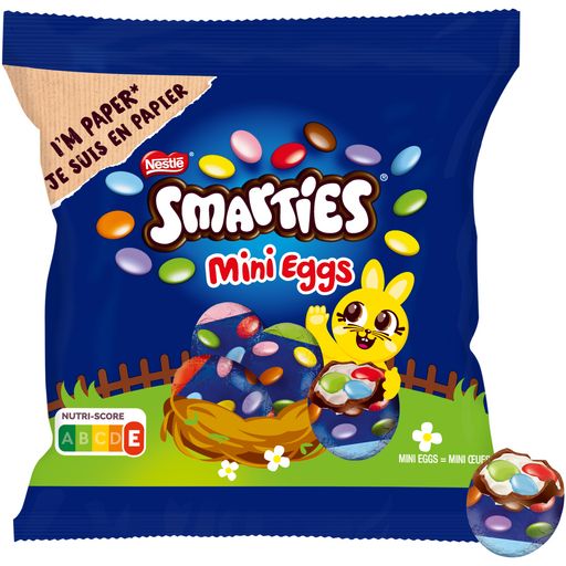Fêtez Pâques avec les mini-oeufs SMARTIES ! Vous allez fondre pour sa coque en chocolat et son fourrage gourmand à la crème confiseur dans lequel sont cachés des mini SMARTIES ! SMARTIES c'est du chocolat pur beurre de cacao et des couleurs d'origine naturelle. Faites plaisir à vos enfants avec SMARTIES ! Avec le Plan Cacao, SMARTIES contribue à soutenir une production plus durable de cacao.