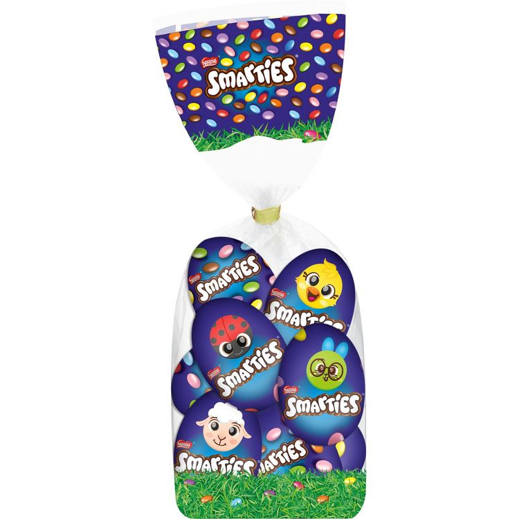Fêtez Pâques avec SMARTIES ! Retrouvez ces 8 délicieux œufs au chocolat au lait pur beurre de cacao avec des mini SMARTIES à l'intérieur, dans un format idéal pour la chasse aux œufs, pour toujours plus de fun ! SMARTIES c'est du chocolat pur beurre de cacao et des couleurs d'origine naturelle. Faites plaisir à vos enfants avec SMARTIES !