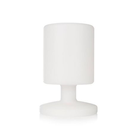 Ce luminaire extérieur de table fonctionne avec une batterie rechargeable d'une durée optimale de 8h. En forme de lampe de chevet tendance, elle aura sa place lors de vos longues soirées d'été pour créer une ambiance cosy.Couleur : blancMatériau : plastiqueDimensions : 17 x 25,5 cm (Diam. x H)Alimen