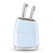 Smeg KBSF02PB Le bloc à couteaux KBSF02PB de Smeg se distingue par son design raffiné, caractérisé par des détails en bois d'acacia précieux et un corps en acier au carbone peint par poudrage . La base antidérapante garantit stabilité et sécurité pendant l'utilisation. Les lames, fabriquées en acier
