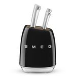 Smeg KBSF02BL Equipez-vous comme un véritable chef de cuisine ! Avec nos blocs couteaux KBSF02BL de Smeg, vous pourrez émincer, ciseler, trancher, hacher, couper finement tout les types d'aliment. Nos blocs sont composés de 6 couteaux avec lames en acier inoxydable allemand et manche en inox brossé.