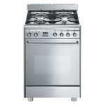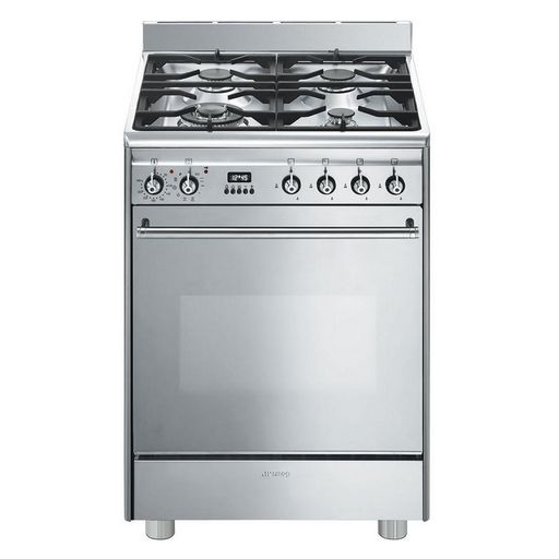 Smeg GP61X9 Cuisinière gaz Smeg GP61X9 est doté de grilles en fonte, chapeaux de brûleurs émaillés fonte, allumage électronique intégré aux manettesSécurité thermocouples rapides, brûleur démontables réglés au gaz naturel, accès aisé pour changement injecteurs, cuvette antidébordement, four électriq