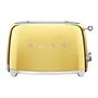 Smeg TSF01GOEU Grille-pain 2 fentes Smeg TSF01GOEU Années 50 avec structure en acier embouti, Base chromée. Levier de contrôle en acier inox. Manette de commande chromée rétro-éclairée. - Type de produit : Grille-pain.6 niveaux de brunissement.Nombre de fentes : 2 extra larges de 36 mm chacune.Cent