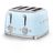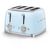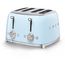 La durée de garantie est de 2 ans. Caractéristiques générales Type produit Grille pain Puissance 2000.0 Style Retro Matière du corps Acier embouti Coloris bleu Nombre de tranches 4.0 Nombre de fentes 4.0 Fonction stop eject Oui Rangement cordon Oui Éjection automa