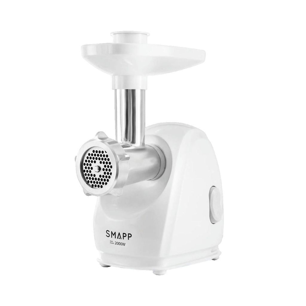 Découvrez le hachoir électrique SMAPP 489.81, un appareil multifonction puissant conçu pour hacher jusqu'à 2,5 kg de viande par minute. Doté d'une chambre de broyage en métal durable et d'un couteau à double tranchant, il garantit une efficacité optimale. Ce modèle est équipé de pieds antidérapants