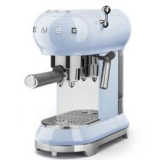 Smeg ECF01PBEU Machine à expresso SMEG ECF01PBEU. Design compact, Logo en relief. Boitier en métal et structure en plastique peint. Porte-filtres, cadre et support de tasses en acier inox. Repose tasses en acier. Levier vapeur en métal. Base chomée.Système de chauffe Thermobloc Pression professionnelle de 15 bars Système anti-goutte. Panneau de commande intuitif.3 filtres (1 tasse, 2 tasses, dosettes) 1 cuillère doseur / tasseur à café. Support de tasses avec indicateur du niveau d'eau et amovible pour placer de grandes tasses. Réservoir d'eau 1 litre amovible avec filtre d'eau optionnel. Base antidérapante