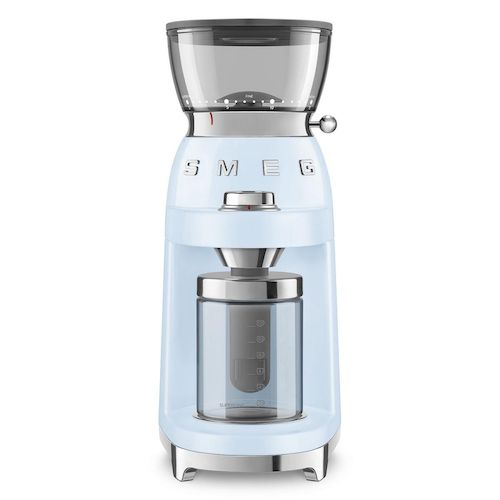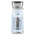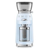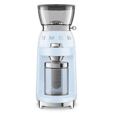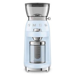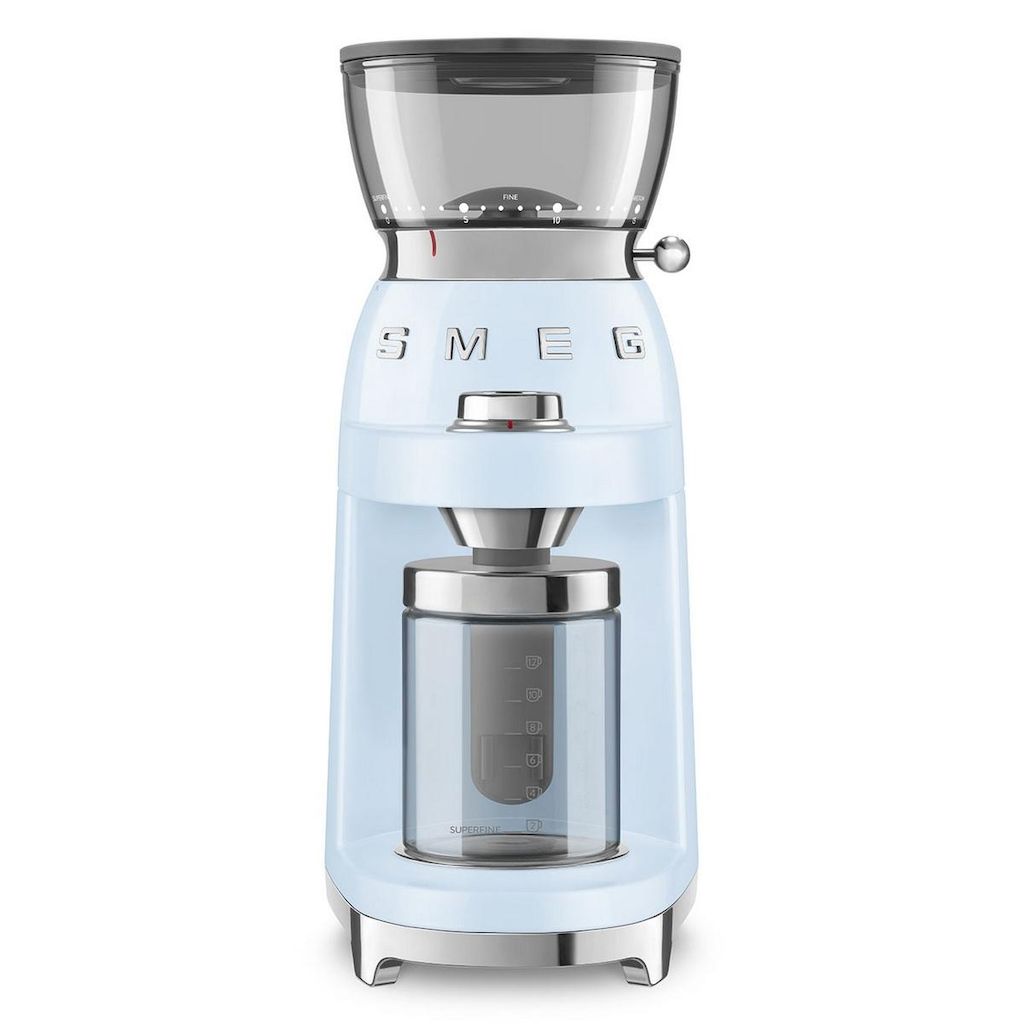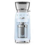 Smeg CGF03PBEU Broyeur à café conique cgf03pbeu de Smeg. Ce broyeur Années 50 est taillé pour gagner en précision en tasse, en ajustant la mouture au bon niveau selon vos habitudes. Son broyeur conique en inox et ses 15 niveaux de broyage couvrent du très fin au moyen pour affiner le résultat. Les 8