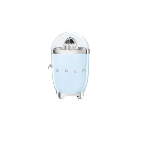 Découvrez le presse-agrumes Smeg CJF01PBEU, un appareil de cuisine alliant efficacité et élégance. Doté d'un moteur puissant de 70 W, il permet d'extraire facilement le jus frais de vos agrumes. Son design rétro inspiré des années 50 avec une finition bleu azur et des détails chromés apportera une t