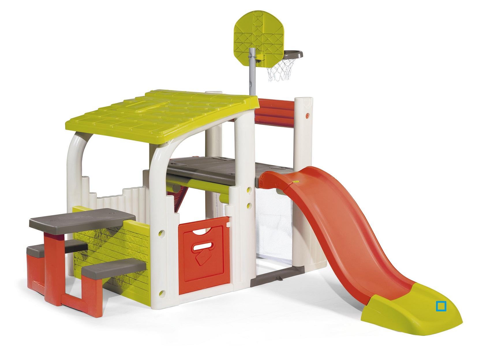Vos enfants rêvent d'une aire de jeux dans le jardin ? Adoptez vite ce Fun center de Smoby. C'est une aire de jeux idéale pour jouer et se dépenser, les enfants vont adorer l'avoir à disposition afin d'y jouer toute la journée. L'aire de jeu Fun Center se divise en deux parties : Le coin maison comp
