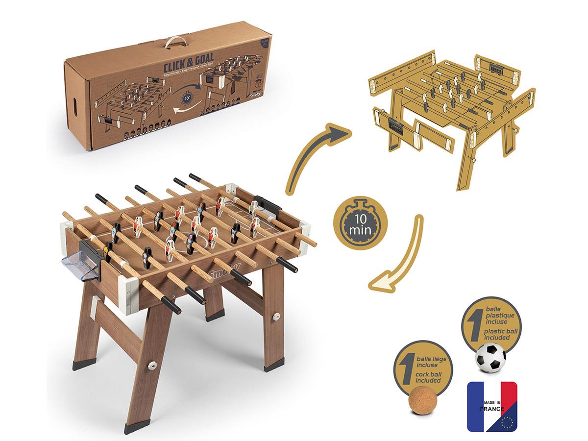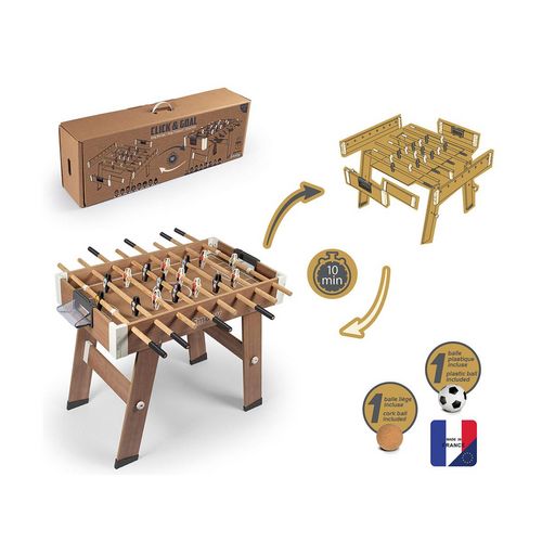 Redécouvrez les joies du baby-foot ! A la maison, en week-end, chez des amis... Le Click & Goal s'assemble et se démonte rapidement pour vous suivre partout et se range facilement. Les différents éléments se connectent entre eux et se démontent grâce à un nouveau système de clips, très facilement