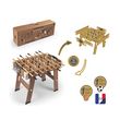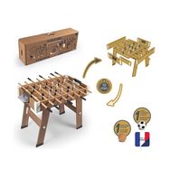 Redécouvrez les joies du baby-foot ! A la maison, en week-end, chez des amis... Le Click & Goal s'assemble et se démonte rapidement pour vous suivre partout et se range facilement. Les différents éléments se connectent entre eux et se démontent grâce à un nouveau système de clips, très facilement et sans outil. Ce baby-foot au design soigné est essentiellement composé de bois (y compris les barres) et offre une grande résistance. Joueurs en plastique décorés avec stickers. Chaque joueur est unique, réaliste et apporte une touche fun au modèle. Produit vendu dans sa boîte de transport. Boîte en carton de grande qualité, dotée de 2 poignées découpées sur chaque extrémité ainsi qu'une poignée plastique sur le dessus. 2 balles incluses : 1 balle liège et 1 balle plastique, pour deux styles de jeu différents. A partir de 8 ans. Fabrication française.