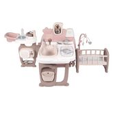 La maison comporte de nombreux accessoires pour agrémenter les fonctions de jeu : 1 faitout, 1 assiette, 1 cuillère, 1 biberon, 1 brosse à dents, 1 petit pot, 1 thermomètre mécanique, 1 flacon pousse-mousse, 1 douchette avec action mécanique, 1 boite de pansements et des planches de pansements, 1 flacon de talc factice, 1 livret pour apprendre à prendre soin de bébé.
